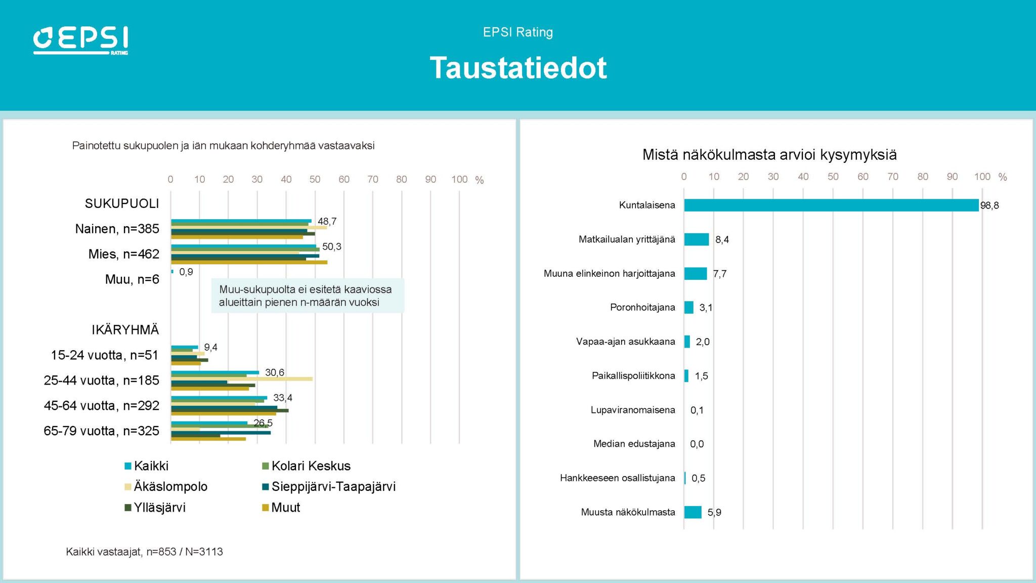 Vastaukset näihin ja muihin esitettyihin kysymyksiin on mahdollista tulla kuulemaan keskiviikkona 10.1.2024 kello 15 tai kello 17 Kolarin kunnan valtuustosaliin. Tutkimustuloksia esittelee kyselytutkimuksen toteuttaja EPSI Rating.